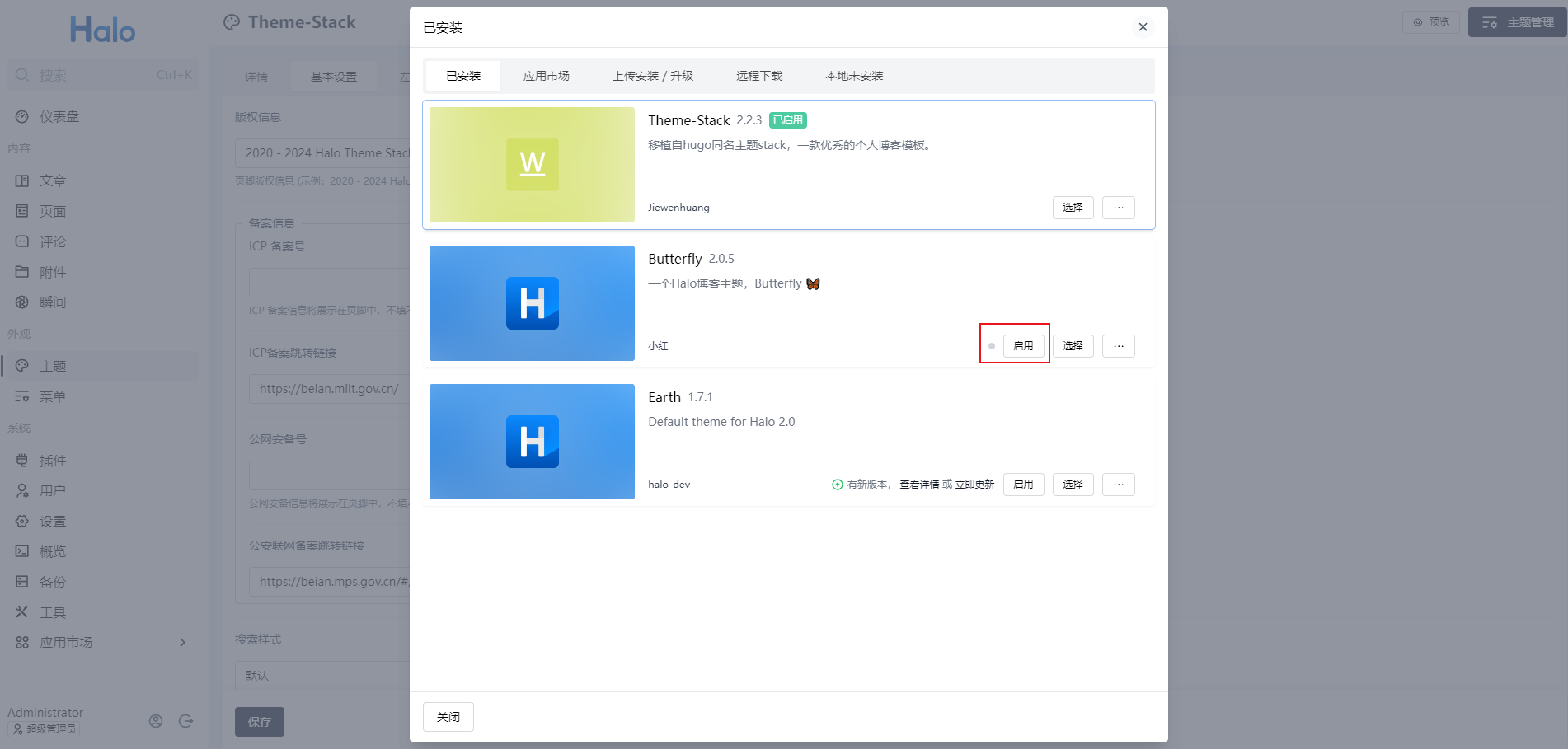 找到刚刚上传的主题,点击启用,即可更换主题。主题也可从应用市场下载。