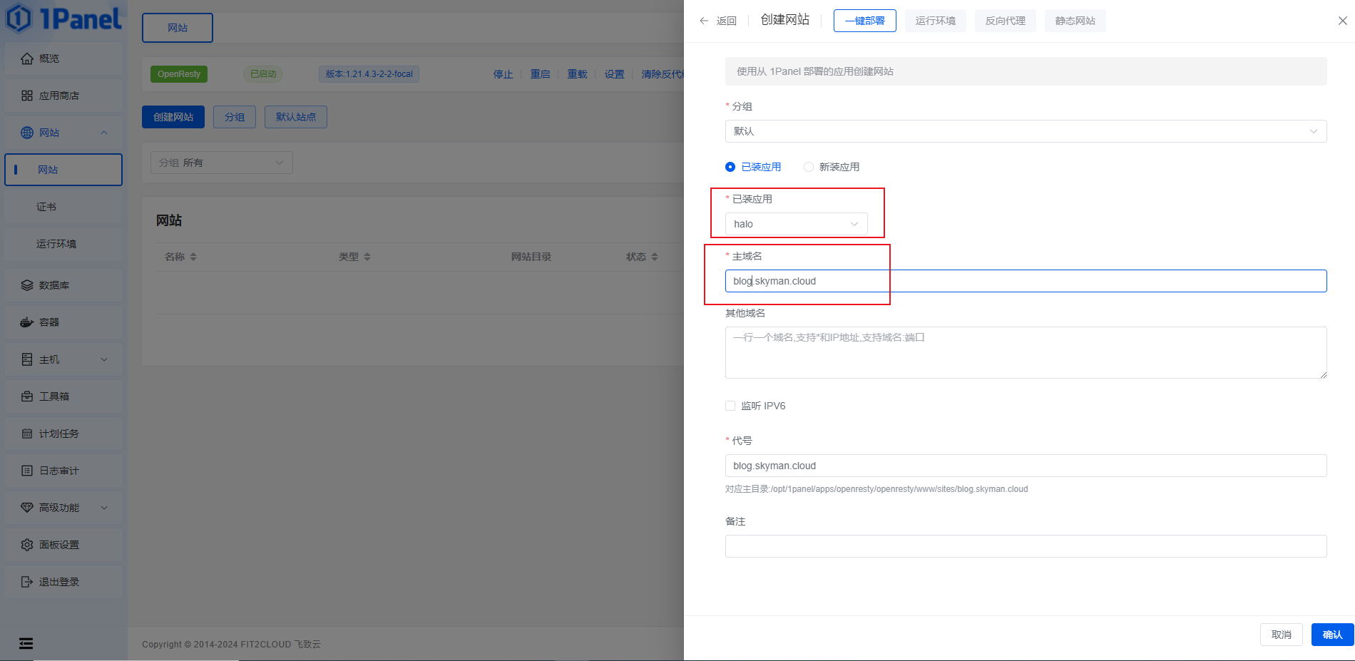 云服务器+1Panel面板+Halo 快速搭建个人博客网站。