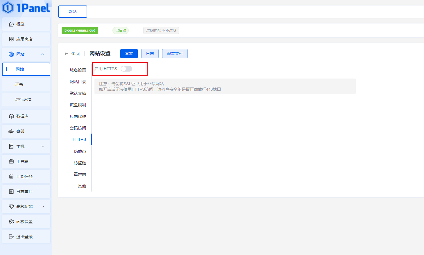 证书申请方法可以参考博主的这篇文章:如何使用1Panel免费申请与续签SSL证书?