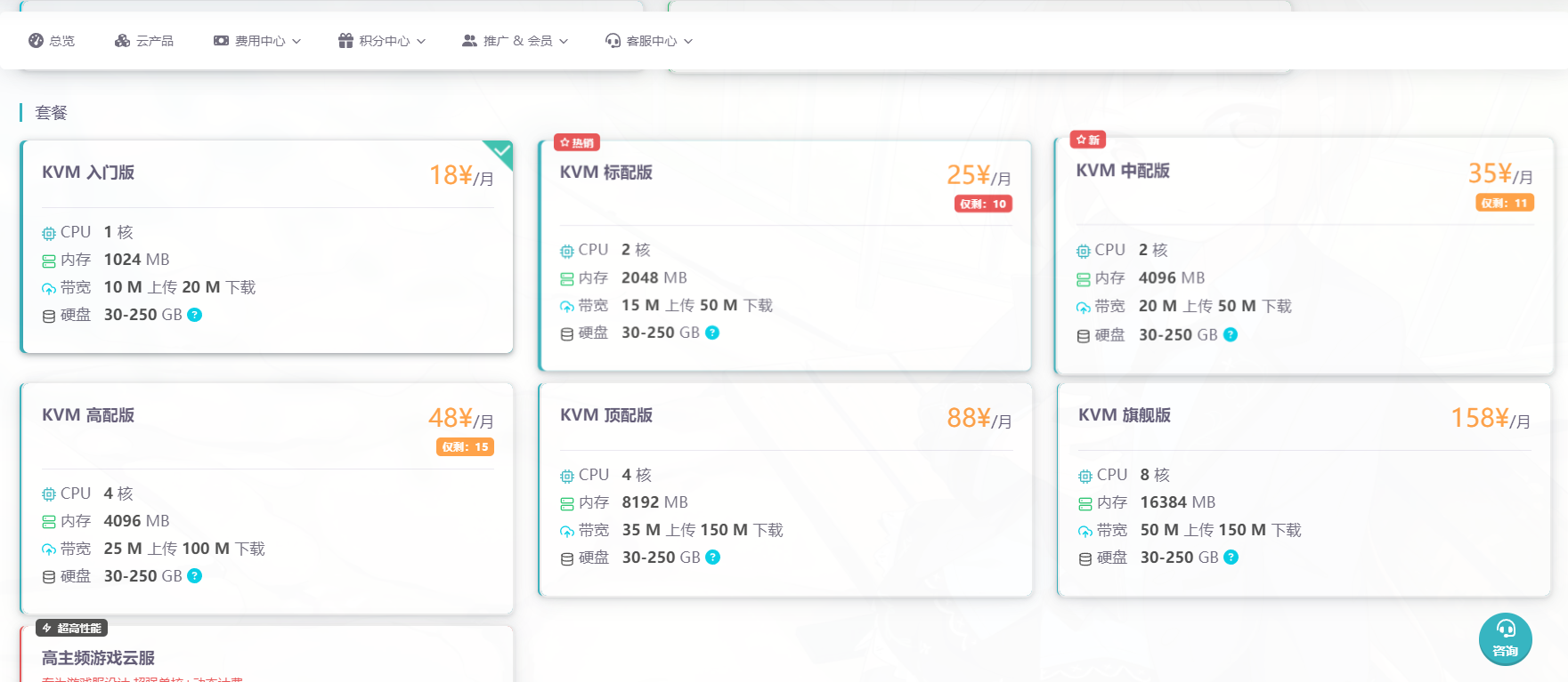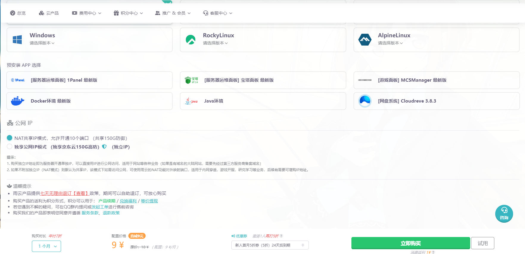 搭建个人博客当然首先需要一台云服务器,我这边推荐的是雨云的服务器: